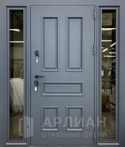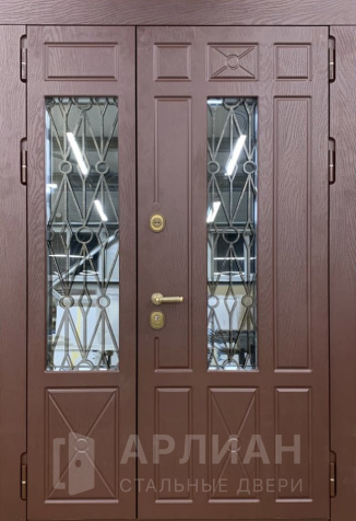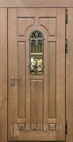 Внутри выбор шире: дверь с винилискожей — бюджетный и практичный вариант, но есть и дизайнерские решения с панелями, филенка, молдинг, резьбой, натуральным шпоном, узор или вставка окном. Если хочется «вау-эффекта», подойдут дверь с витражом или дверь с зеркалом внутри. А для нестандарта существуют арочные решения — например, дверь в коттедж арочная, а также широкие комплекты шириной под большой проём, вплоть до трёх створок.