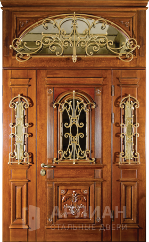 Утепленная входная дверь для коттеджа с кованными элементами №28