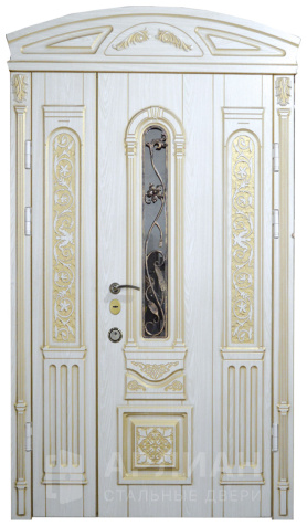 Парадная дверь с золотой патиной и фрамугой №408